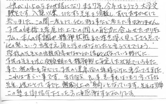 TOP›保護者からの手紙›保護者からのメッセージ 1